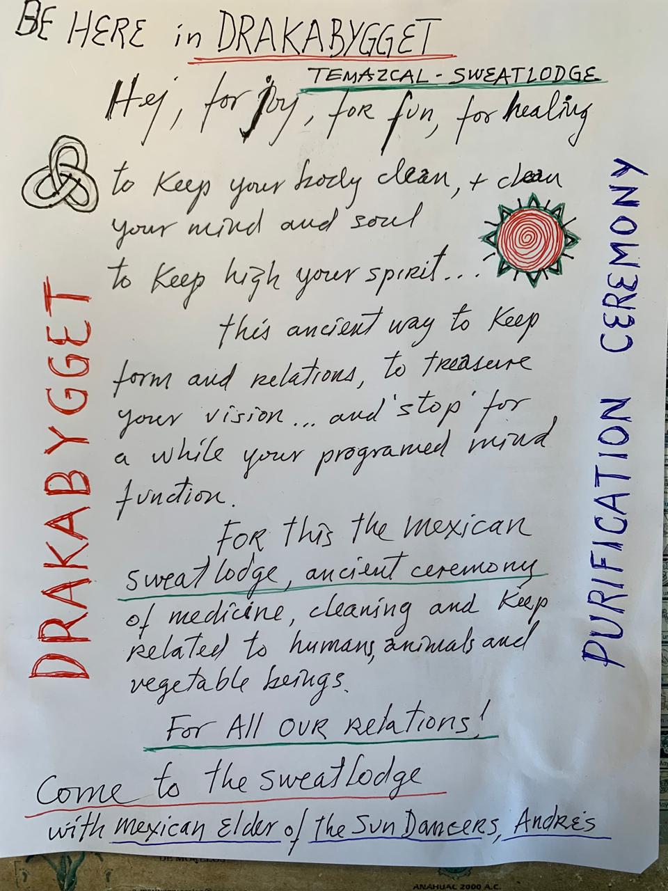 Andres är en fantastisk berättare och har levt ett otroligt liv där Drakabygget hela tiden har varit en inspirerande källa både för hans schamanism, hans poesi och livet i allt . Att få besök av Andres på Drakabygget är en stor gåva! Han är en av de största schamanerna i Mexico – Detta är rediga grejor! The Real thing.